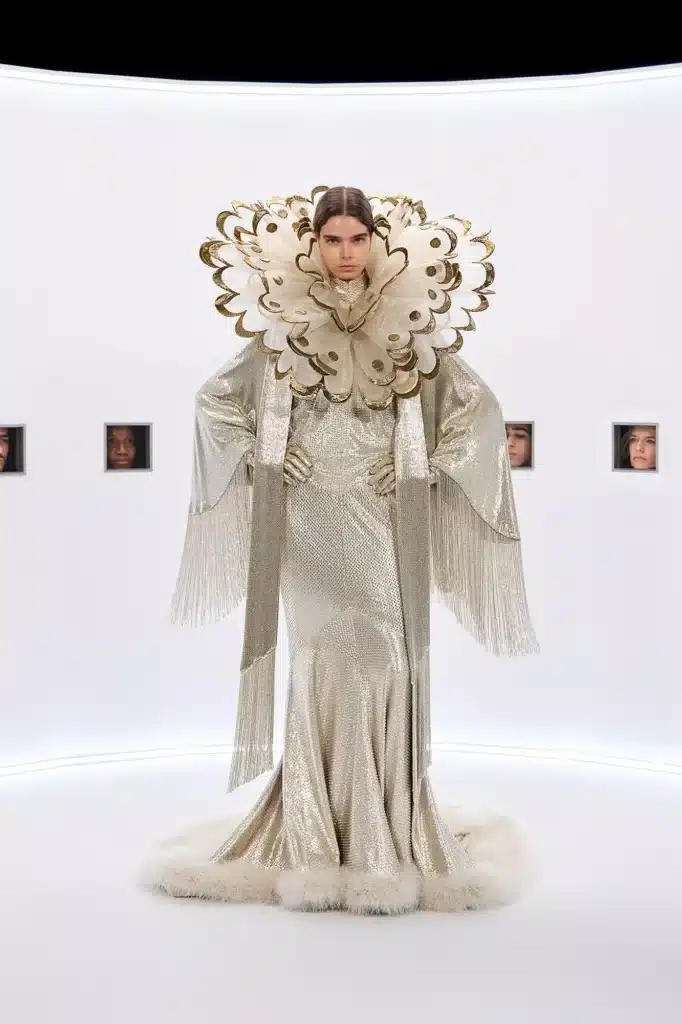 Designér propracovanou kolekcí perfektně zachytil esenci haute couture. Vytvořil tak téměř nereálný svět, v němž se ale technická virtuozita, nadčasové řemeslo a nenahraditelné dědictví mění v osobní luxus, který je hmatatelný, žádaný. Nahrazením přehlídkového mola speciálním setem navíc donutil přihlížející zpomalit. Zaměřil jejich zrak na konkrétní bod a donutil je tak vstřebat každý detail svých kreací.