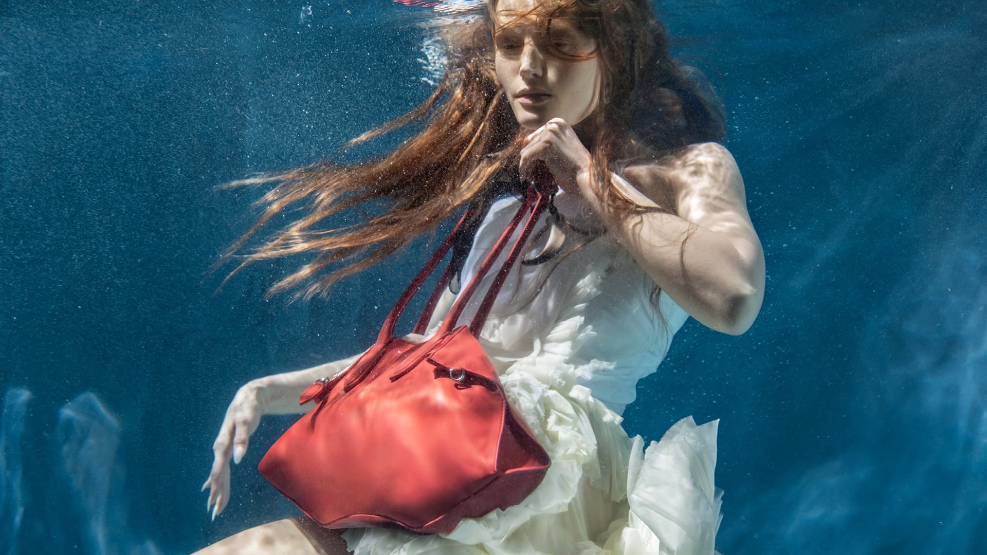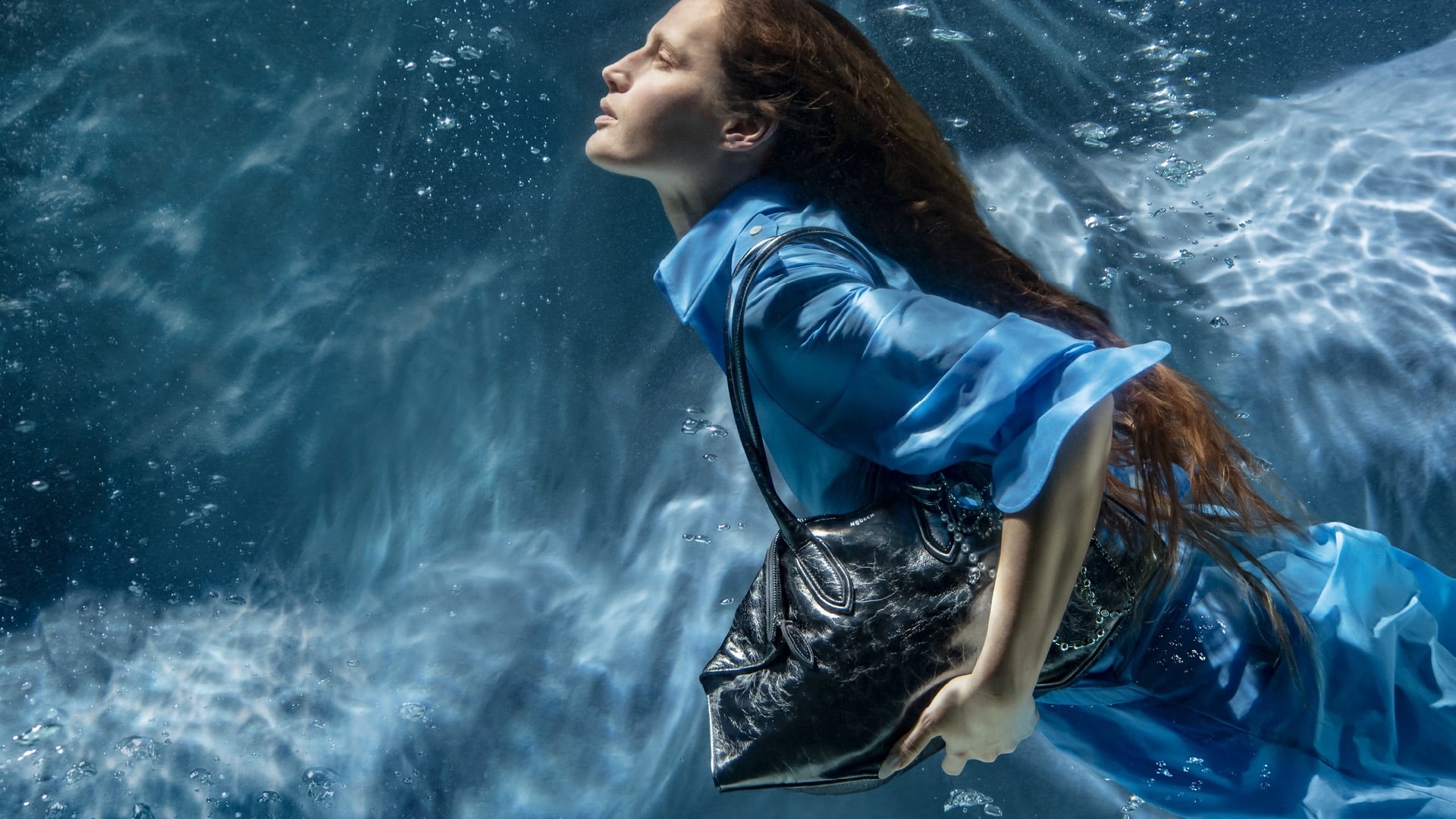 Pod hladinou se obraz zpomaluje a vše získává lehčí váhu. Alexander McQueen vrací na scénu Manta Bag kampaní, která se odehrává v tekutém prostoru mezi realitou a fantazií. Objekt se vznáší kolem těla, otáčí se v proudu a reaguje na každý pohyb. Fotografie od Tima Walker pracují s intenzivní modří a světlem, jenž se láme na povrchu materiálů. Modelka Vivien Solari se před kamerou pohybuje s lehkostí, jako by gravitace ztratila význam.