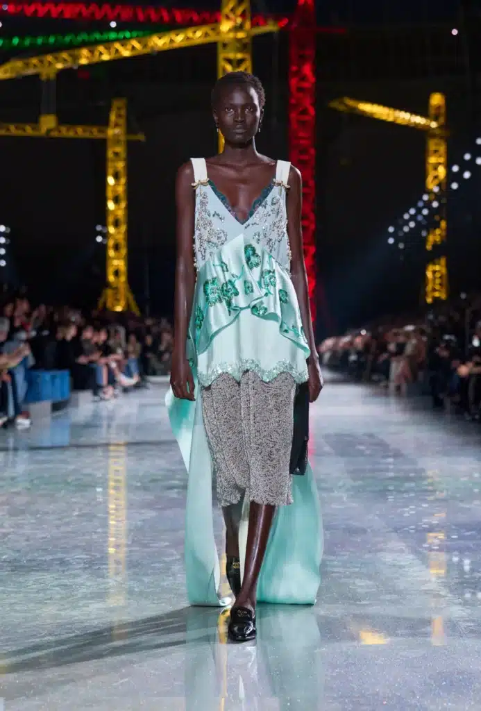 Dojem proměny zachytily rovněž jednotlivé siluety. Zatímco na začátku odkazovaly na jazzovou éru 20. let, postupně přešly ve střídmější střihy 30. a 40. let a precizní formy 50. a 60. let. Myšlence sloužila rovněž paleta barev. Kolekci odstartovaly a ukončily střídmé černé looky. Většinu řady však pohltily pestré záblesky primárních odstínů, doplněné o jemné nádechy pastelově růžové, modré, oranžové nebo žluté.