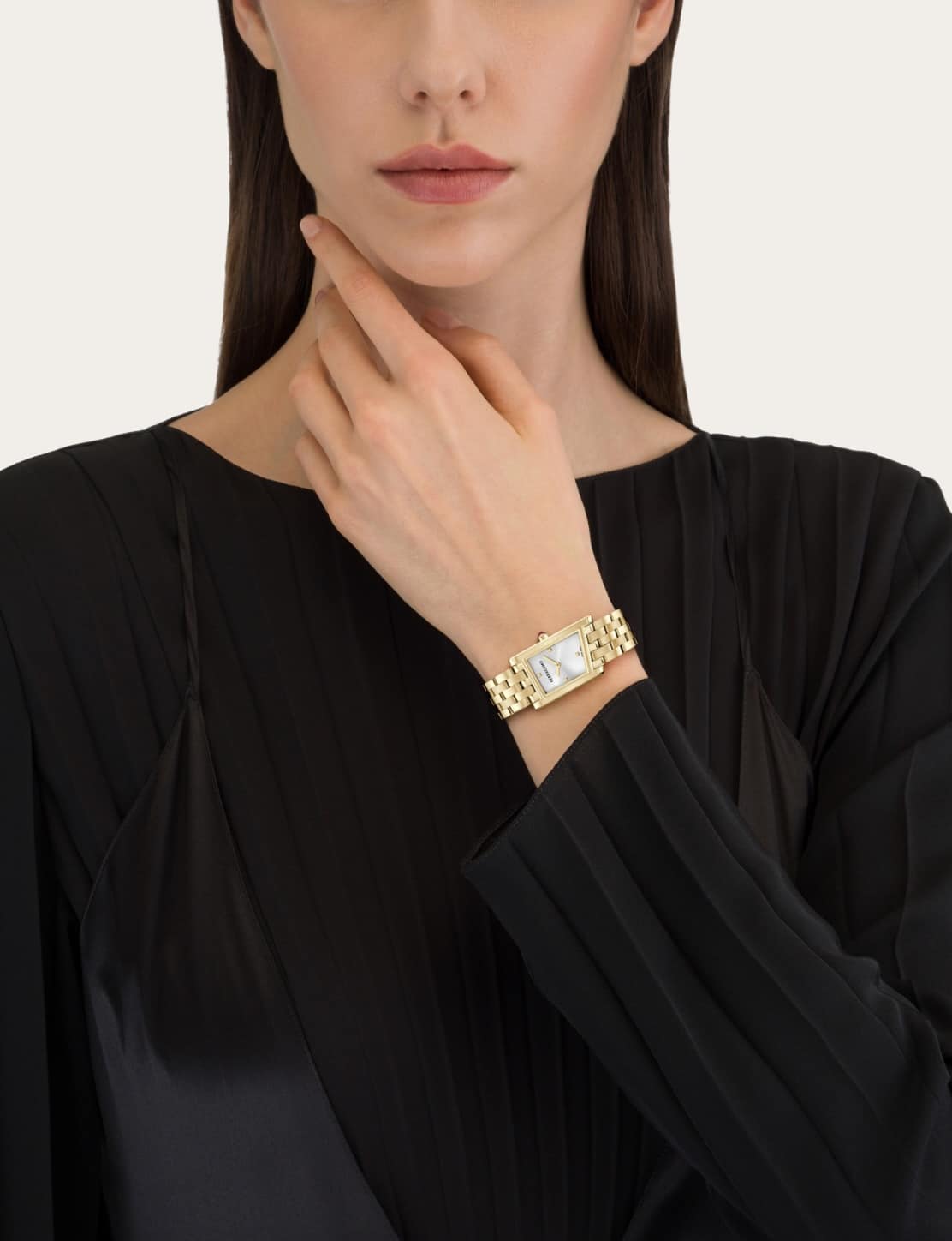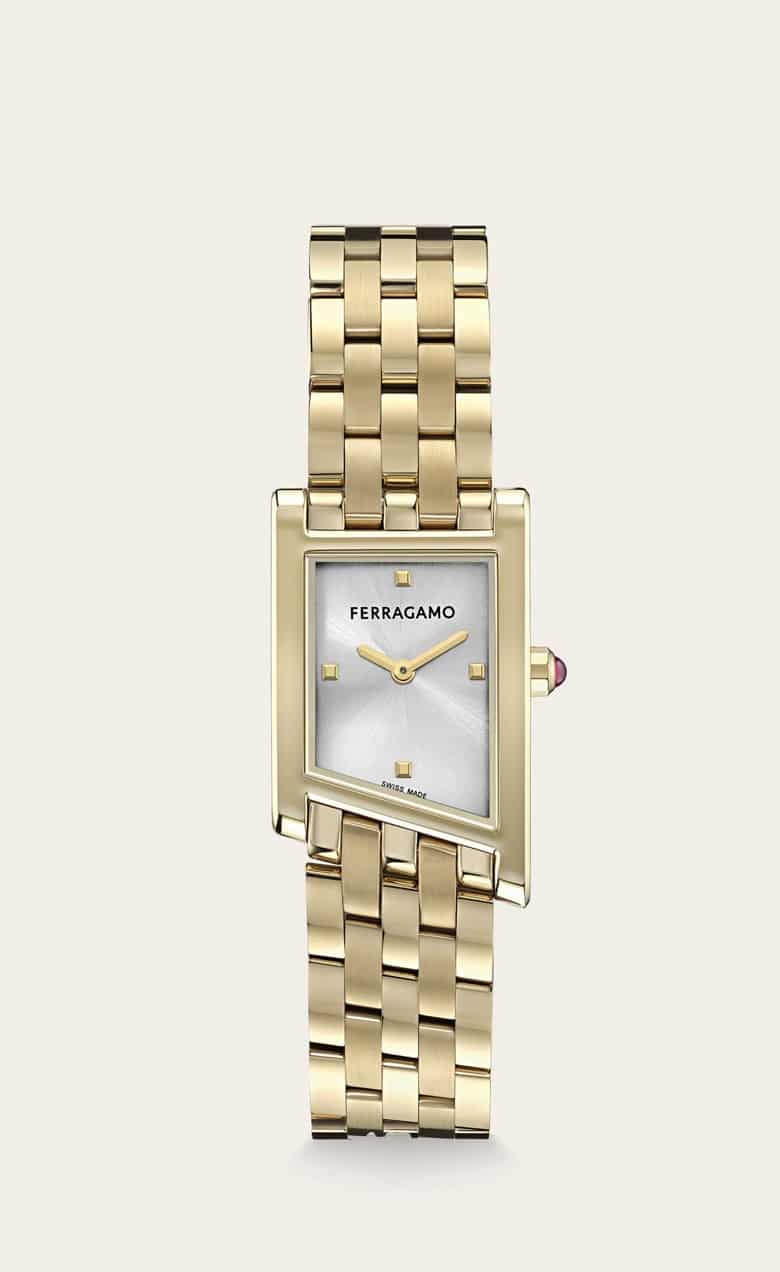 Ferragamo přináší propojení módy a hodinářství způsobem, který má vlastní charakter. Asymetrický tvar pouzdra vypadá na ruce jako designový objekt. Jemné zlacené tóny, čistý ciferník a urbanistická linka připomínají práci se světlem v milánských palácích. V kombinaci s kovovým náramkem vytváří moderní, sebevědomý styl a hodí se k ženám, jež rády pracují s výrazem a osobním rukopisem. Pod stromečkem proto působí jako skutečný módní artefakt.