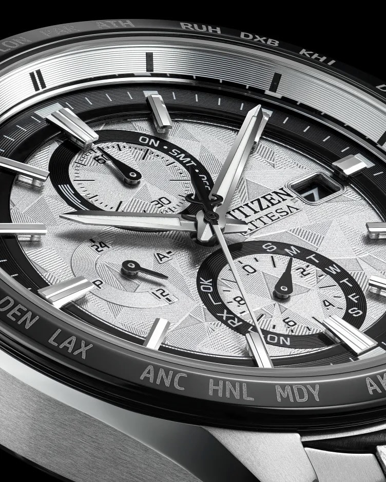 V přístupnějším, ale neméně charakterním duchu přichází Citizen Attesa Platinum Shine AT8284-61A. Titanový chronograf s 26 časovými pásmy a věčným kalendářem je perfektní ukázkou, že i nejnovější high-tech může působit noblesně. Zrcadlový lesk povrchu nadčasových hodinek evokuje metropolitní noc. Jde tedy o ideální doprovod pro muže, který cestuje sice lehce, ale přesto vždy přesně.