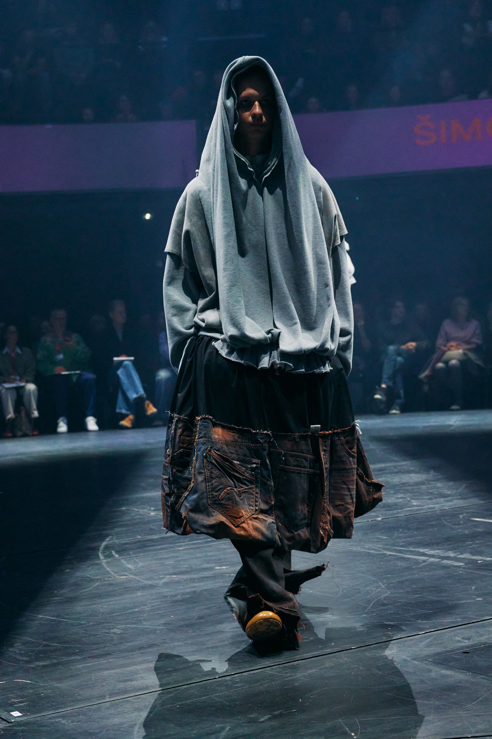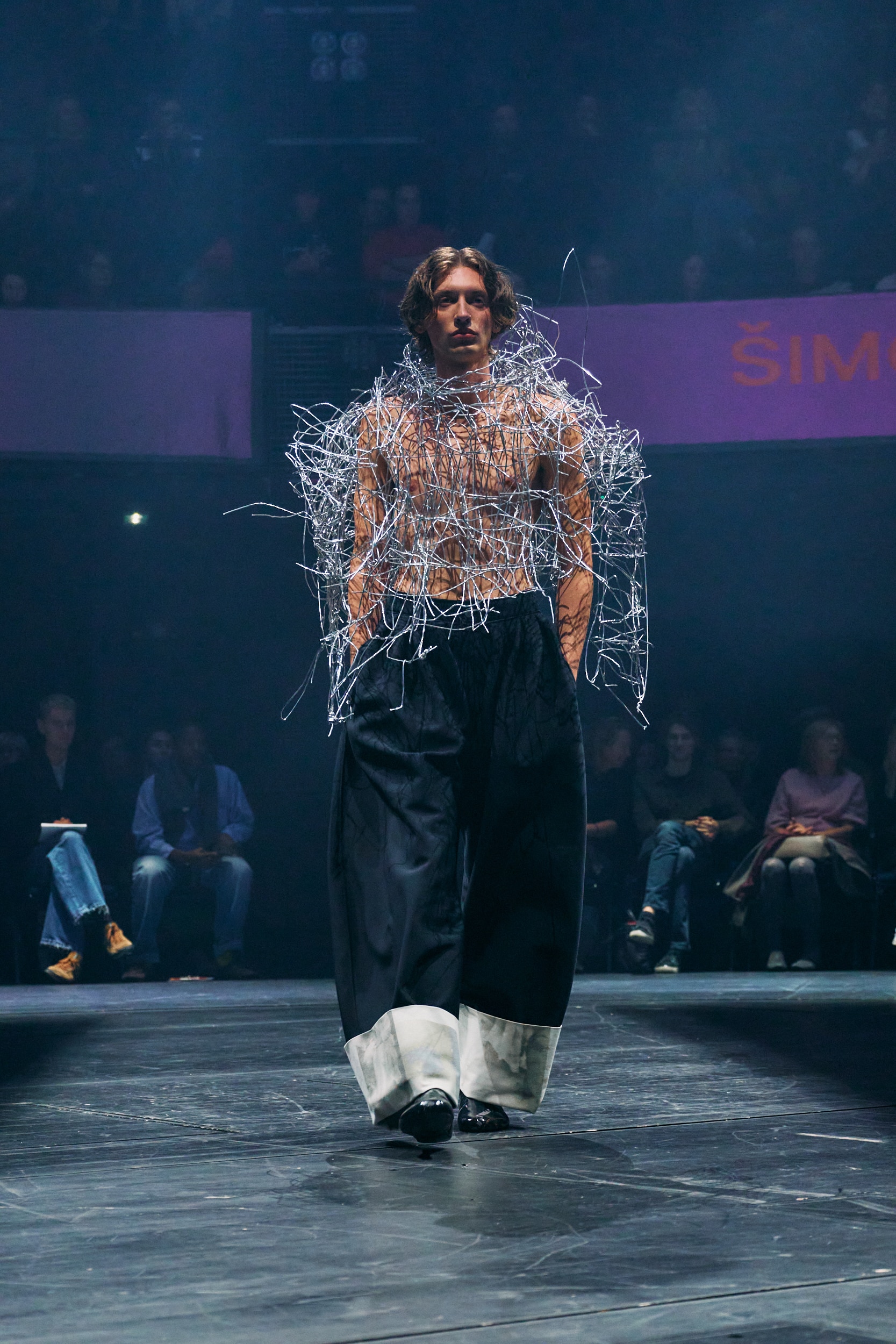 Kolekce záměrně balancovala na hraně nositelnosti a citlivě kombinovala každodenní oblečení s avantgardnějšími a uměleckými elementy v podobě objemného drátěného topu či sukně s vysokým lemem, vytvořeným z denim zbytků. „Jeho přístup byl velmi autentický, současný a přitom osobitě pokřivený. Cítíme z něj opravdovost a schopnost vnímat přítomný okamžik,“ doplnil Malgouyres.