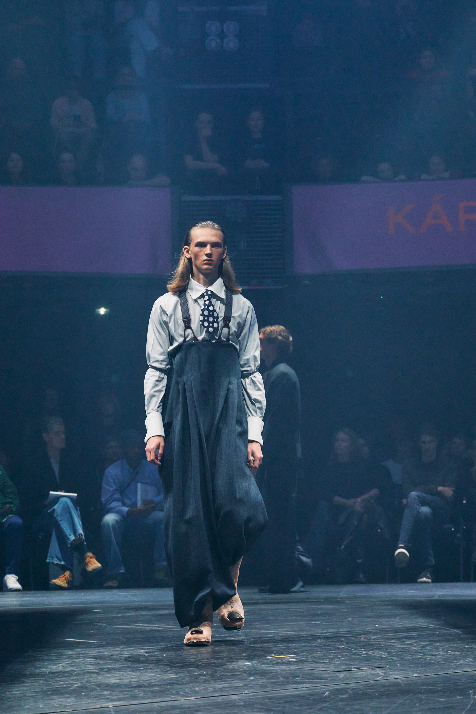 Modely působily jako silný celek díky kontrastu mezi formálním šatníkem a hravostí kreslených pohádek. Kalhoty získaly na objemu a precizně zkonstruovaná saka a košile doplňovaly vzorované kravaty. Pohádkovým prvkem byly i vlněné kalhoty s kšandami. „Zamilovali jsme se do energie a entuziasmu projektu, byl rozmarný, vtipný a od prvního nápadu až po provedení výjimečně dotažený,“ uzavřel Malgouyres.