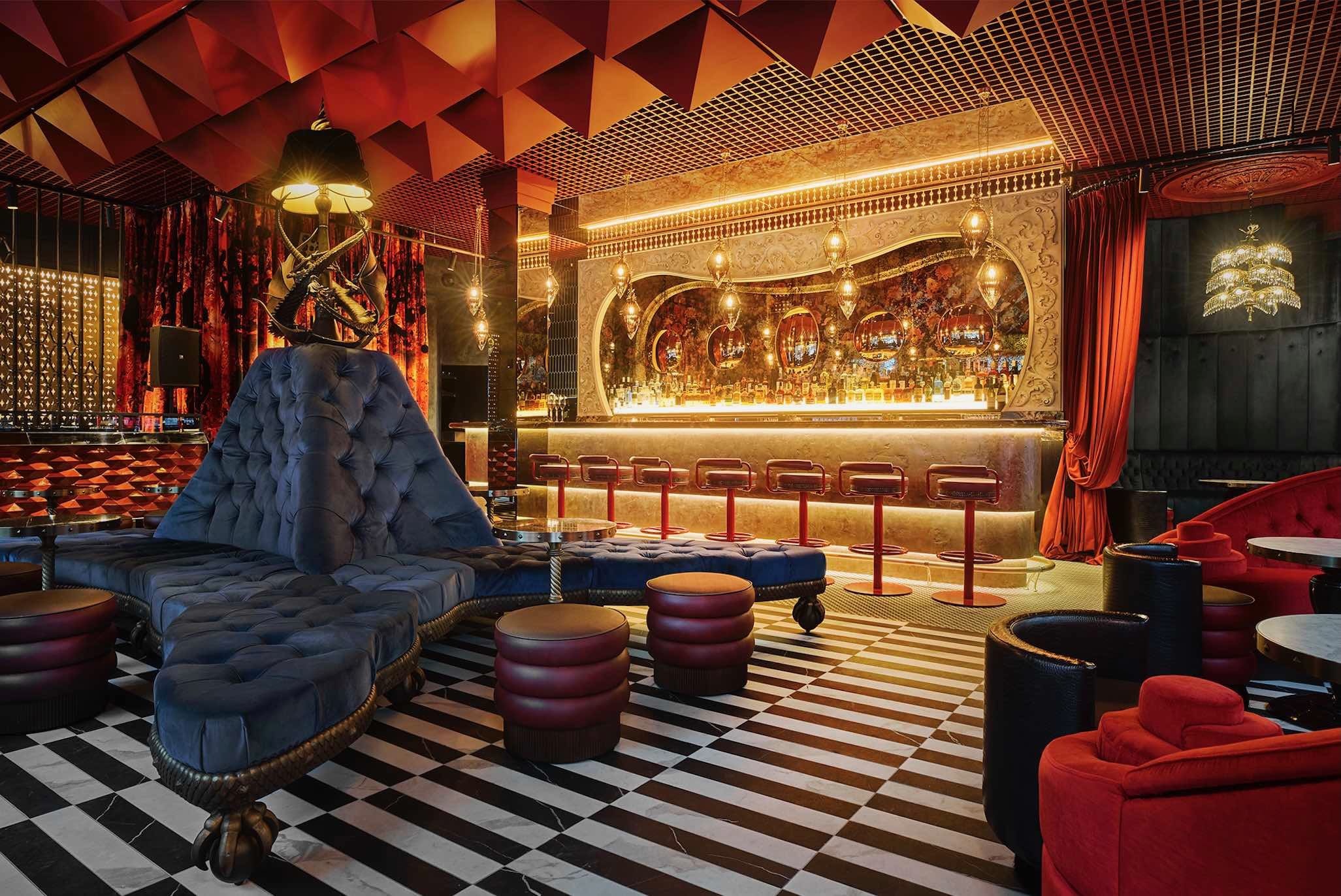 Neodmyslitelnou součástí hotelu zůstává samozřejmě i hudba. Večer se prostor mění díky baru a restauraci Thirteen, kde se pořádají DJ sety, koncerty i menší eventy, inspirované především retro hudbou. Lidé sem rozhodně nechodí jen přespat, cestují za atmosférou, která pokračuje dlouho po půlnoci. Interiér pracuje s červeným brokátem, svíčkami a tmavým dřevem, takže celé místo připomíná směs jazzového klubu, rockového baru a soukromého salonku. Koktejly pak přirozeně nesou tematické názvy jako například Gothic Fire nebo Lady Stardust.