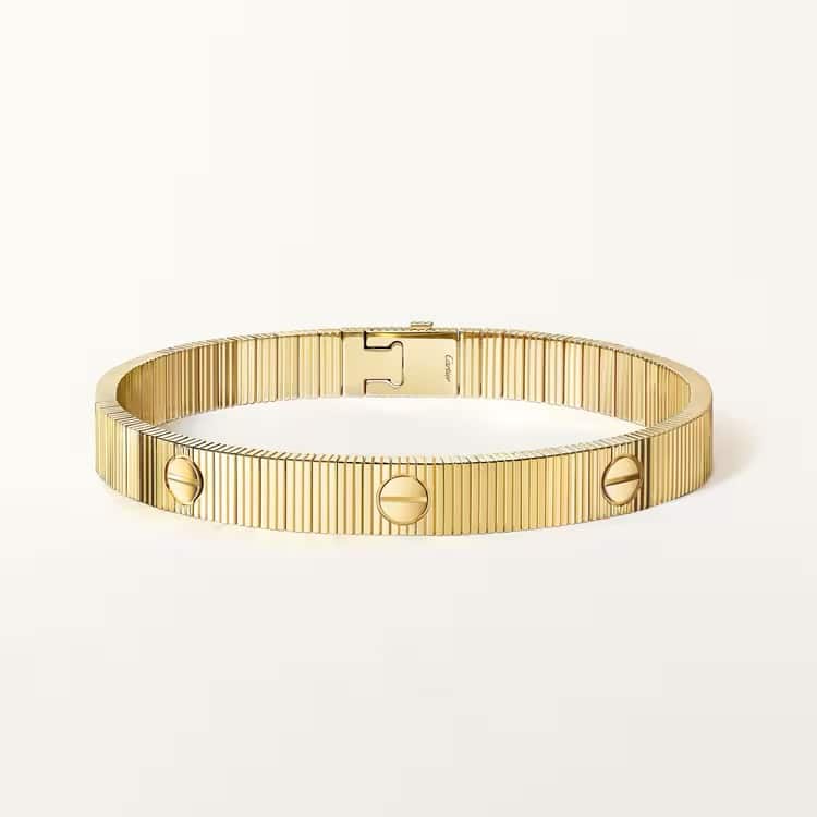 Když Aldo Cipullo představil v roce 1969 svůj Love Bracelet, proměnil šperk v kulturní záležitost. Oválný tvar, precizní šroubky a malý šroubovák vytvořily rituál, který přesáhl šperkařství a pronikl do popkultury. Model Love byl strukturou citu, zlatým závazkem, který se uzamykal na zápěstí. Cartier definoval novou rovinu intimity. Šlo o jeden z prvních šperků, jenž mimo prstýnky sloužil jako zpečetění lásky.