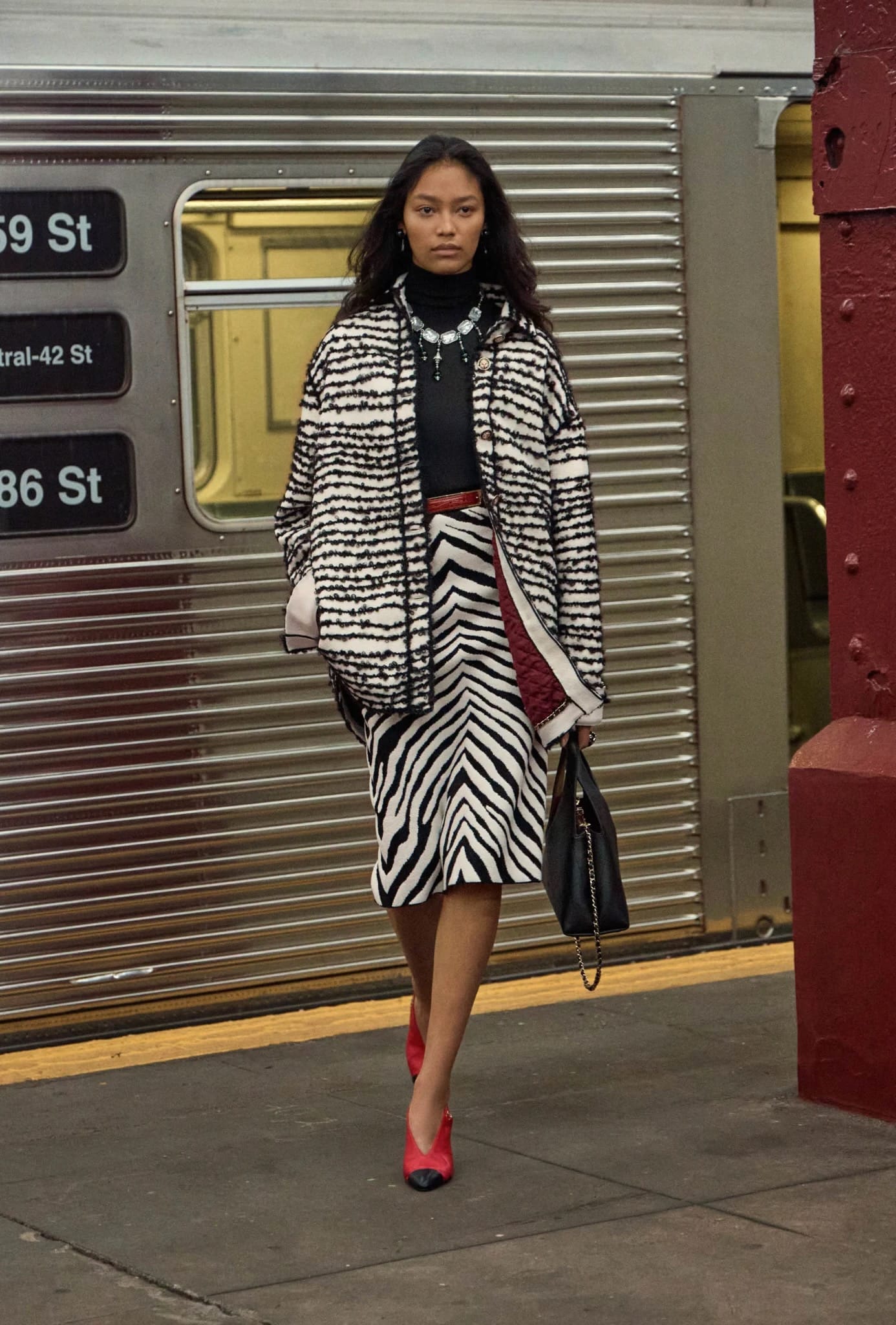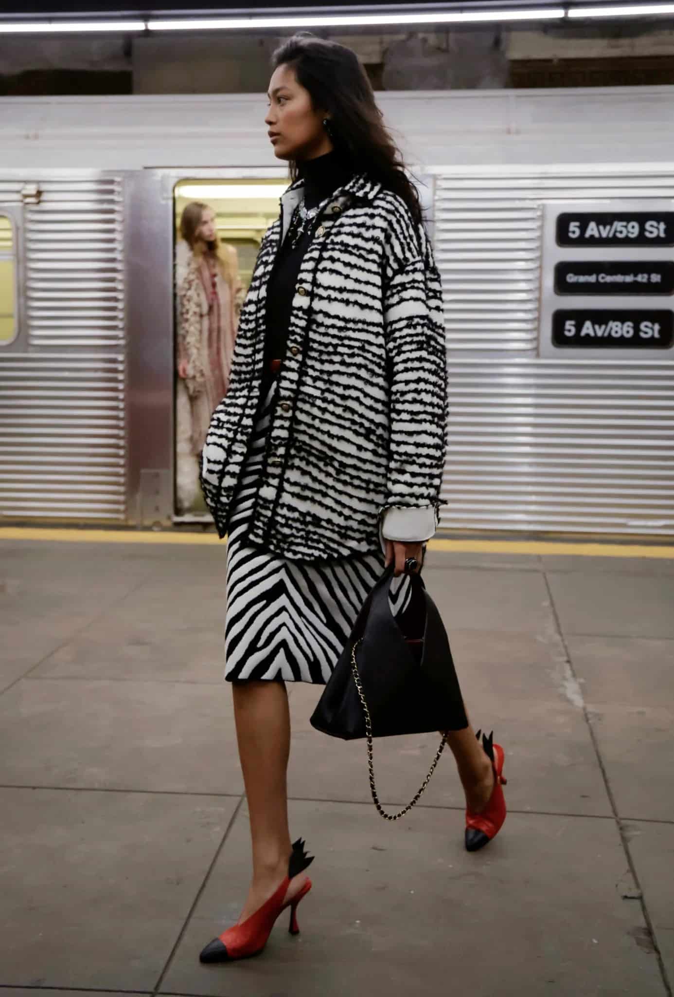 Zatímco leopard byl dlouho synonymem animal printu, v aktuální sezóně přebírá štafetu zebra. Je vizuálně výrazná, ale méně očekávaná. Právě proto působí moderněji. Na molech se objevila v kolekcích značek, jako je Chanel nebo The Attico. Zebra funguje skvěle na kabátech, sukních i doplňcích, kde její kontrastní rytmus zvýrazňuje daný střih. Pokud je zpracovaná v kvalitním materiálu, například v kožichu, hedvábí nebo strukturované vlně, působí nesmírně elegantně. Stejně jako zebra samotná. Navíc pruhy umí zeštíhlit a protáhnout.