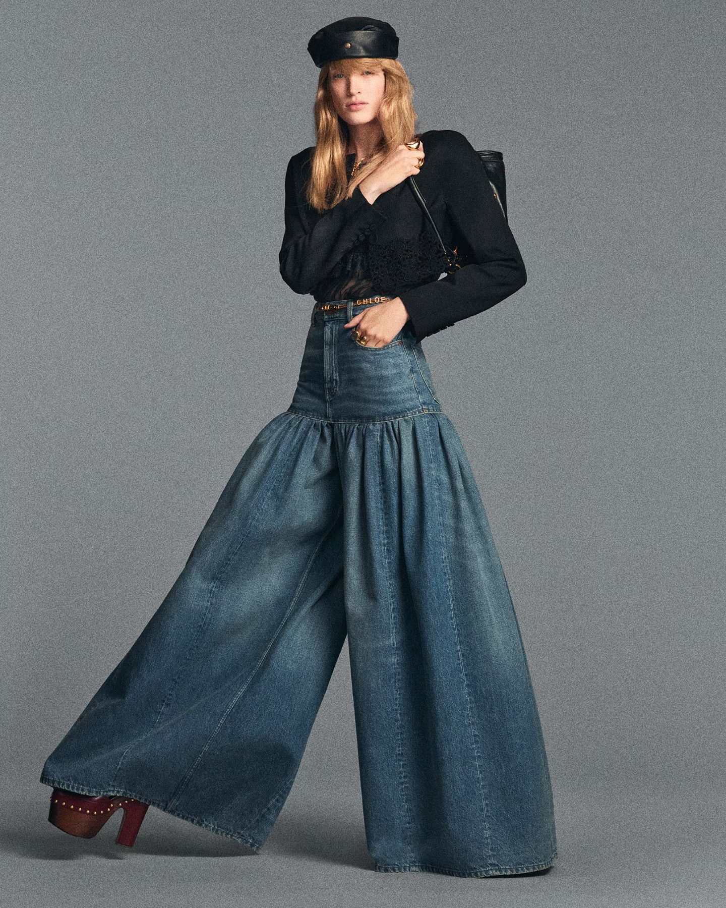 Největší změna přichází v kalhotách. Silueta se rozšiřuje, pas se zvedá a nohavice získává architektonický objem, často tak výrazný, že evokuje sukni. Tím vzniká nová definice Chloé girl. Romantiku doplňuje jistota. Široké džíny nebo pracovní kalhoty se kombinují s krajkovým topem či průsvitnou halenkou, čímž vzniká kontrast, který nahrazuje dřívější krajkové šaty. Styl tak získává městský charakter a funguje i během pracovního dne. Jde o opravdu vytříbený styl, protože na módní scéně objem ustupuje štíhlým střihům. Tím se ale Chloé neřídí.