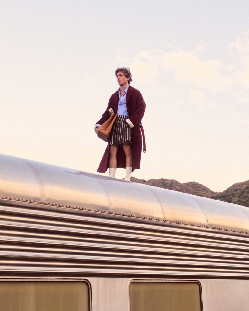„Každý kousek na mě působí dojmem, že je formován cestou, na níž toho hodně prožil. Miluji oblečení, které je obnošené, vytvořené pohybem a které má sebevědomí propojit různé světy,“ vysvětlil Jeremy Allen White, jenž byl ambasadorem Louis Vuitton jmenován v červnu loňského roku. Na snímcích se objevuje ve vintage inspirovaném obleku, v čokoládově hnědém saku či stejně laděné denim bundě.