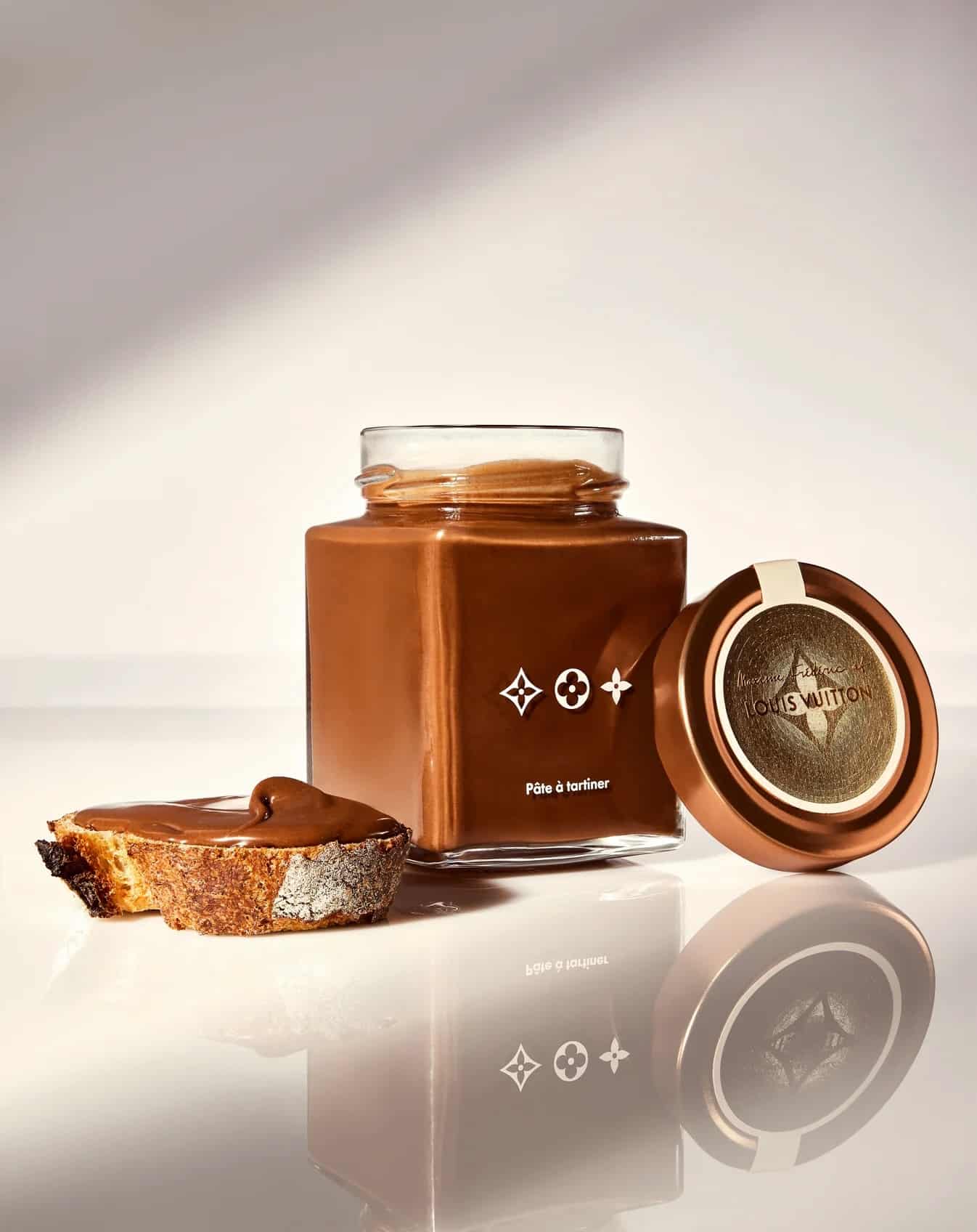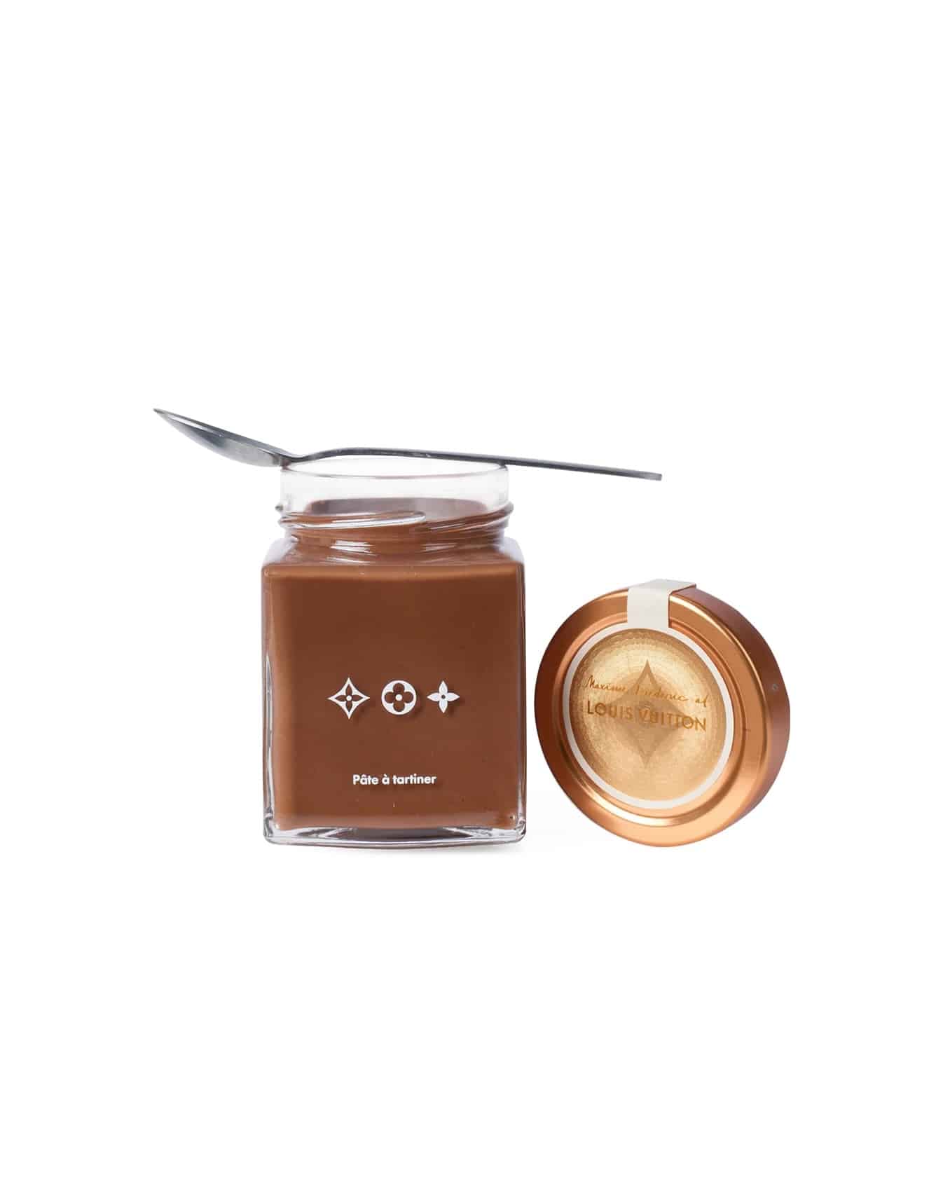 Na první pohled vypadá Louis Vuitton pomazánka jako rekvizita. Skleněná dóza s decentním brandingem, minimalistická etiketa, obsah v odstínu dokonalého kakaa. Ve skutečnosti jde o Pâte à Tartiner Choc au Lait, ultra-limitovaný čokoládovo-lískooříškový krém vytvořený ve spolupráci značky Louis Vuitton a jednoho z nejrespektovanějších francouzských cukrářů současnosti Maximem Frédéric. V podstatě se jedná o luxusní parodii na ikonickou Nutellu.