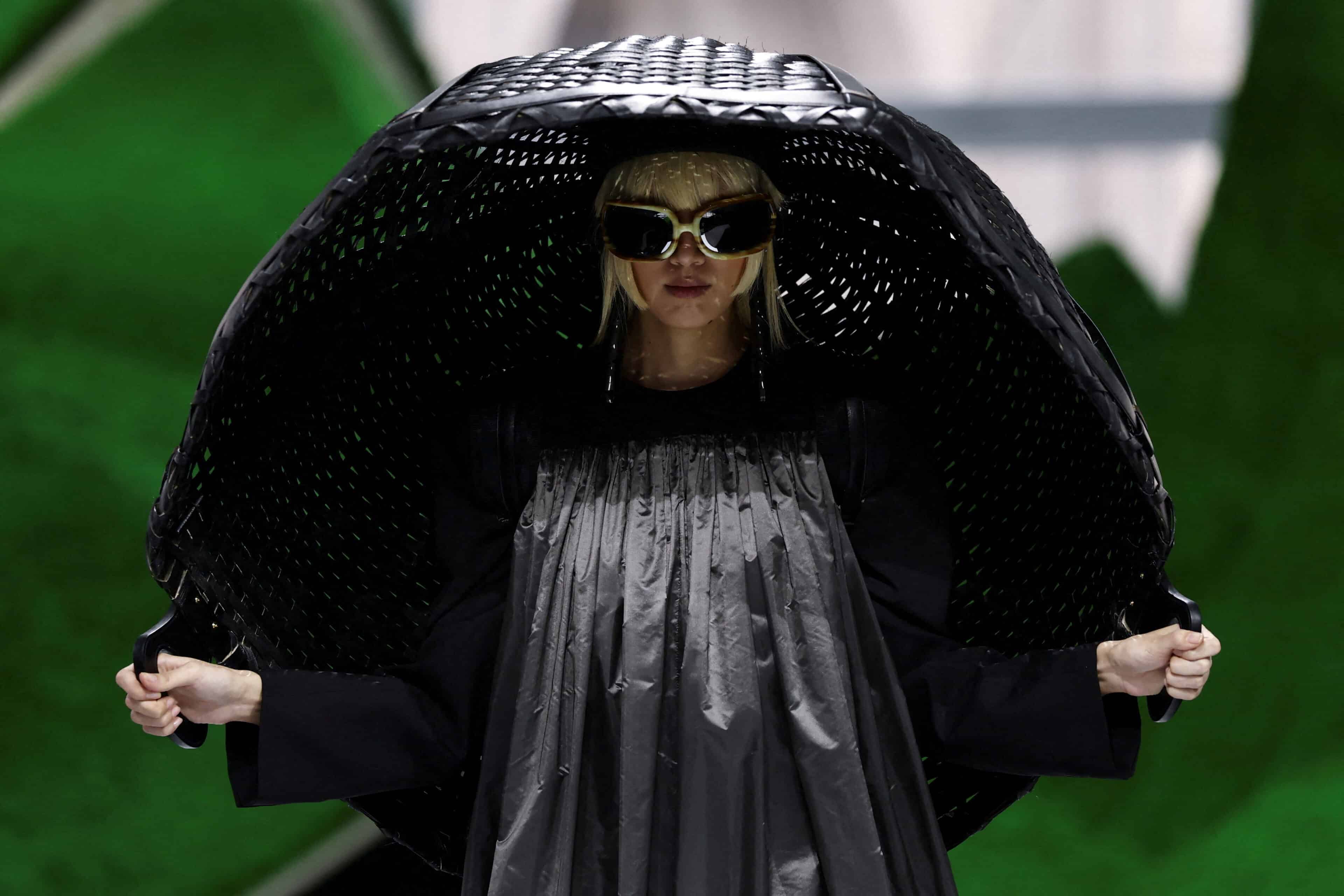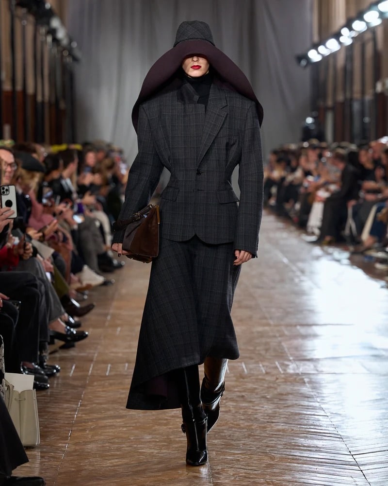 Lanvin na to jde jinak, ale stejně radikálně. Zatímco Louis Vuitton pracuje s objemem a krajinou, Lanvin si hraje s tváří jako s plátnem připraveným na malbu. Pokrývky hlavy překrývají obličej, prodlužují siluetu nebo ji naopak uzavírají do kompaktního tvaru. Některé modelky vypadají, jako by měly hlavu zasunutou do vlastního oděvu. Jiné připomínají objekty z jiné reality, které si jen na chvíli půjčily lidské tělo.
