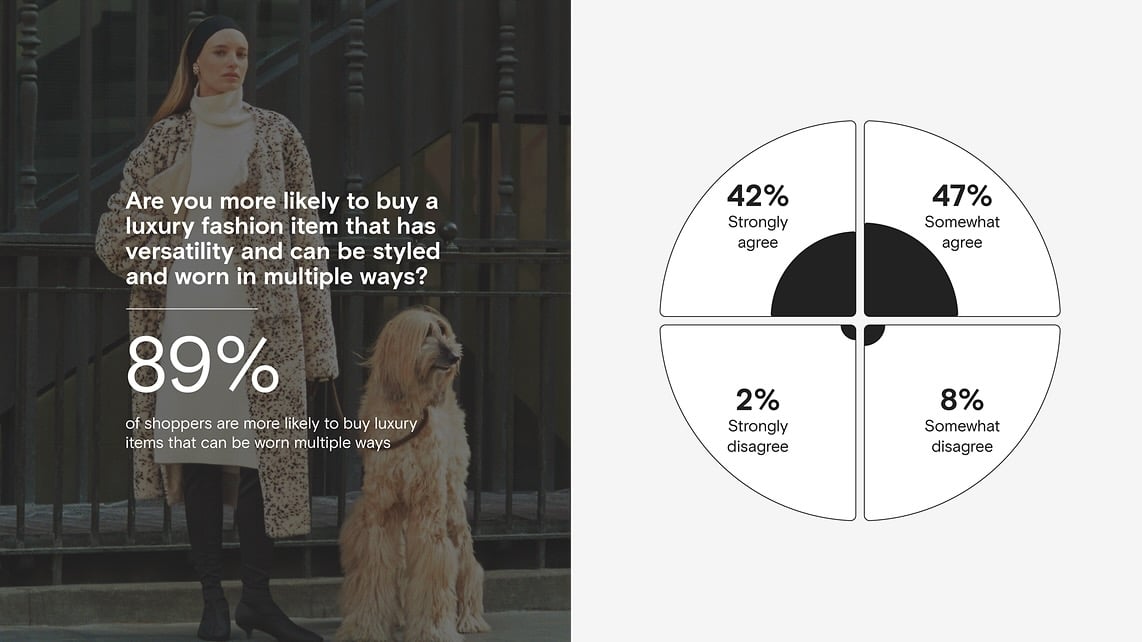 Jedním z nejvýraznějších zjištění Farfetch je důraz na praktičnost. Až 89 procent dotázaných při výběru luxusních produktů sleduje, kolika způsoby je dokáže využít. Kabát, který funguje k obleku i džínům, získává větší váhu než efektní model vhodný pro jedinou příležitost. Šatník se zmenšuje, nároky však rostou. Místo velkého množství přichází pečlivé rozhodování, jenž připomíná výběr nábytku nebo hodinek.