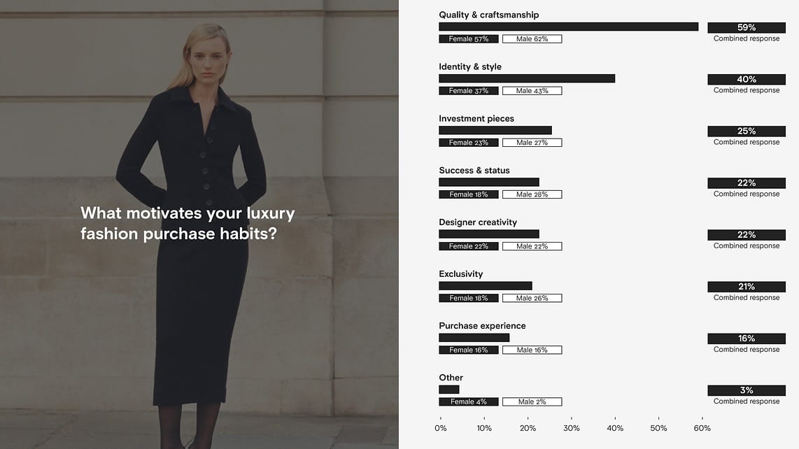 Respondenti výzkumu platformy Farfetch napříč generacemi uvádějí, že cena pro ně přestala být jediným symbolem hodnoty. Důležitou roli získává materiál, řemeslné zpracování a schopnost daného produktu vydržet dlouhé roky. Luxusní móda se tak dle nové studie dostává blíže k oblasti sběratelství a investic než k běžné spotřebě. Firma zároveň uvedla, že zákazníci ztrácejí zájem o kousky s výrazným logem.
