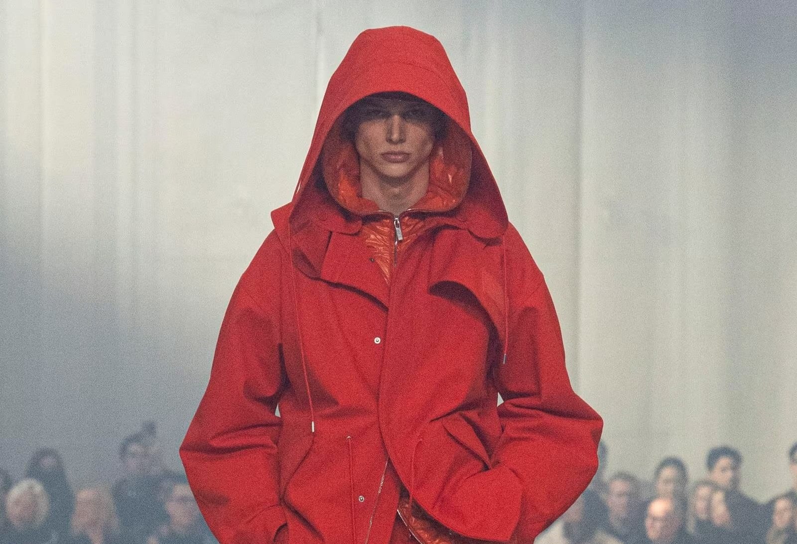 Milánské přehlídkové molo se proměnilo v oranžový kaleidoskop, na kterém módní dům Prada odhalil kolekci pro příští jaro a léto. Miuccia Prada a Raf Simons předvedli šatník, jenž dýchá svobodou a současně pracuje s laboratorní přesností. Každý look tak působil jako kompozice, jež záměrně porušuje řád a skládá nové proporce. Na přehlídkové dráze se tentokrát zrodila móda připravená na proměnlivost digitálního věku.