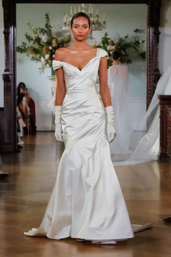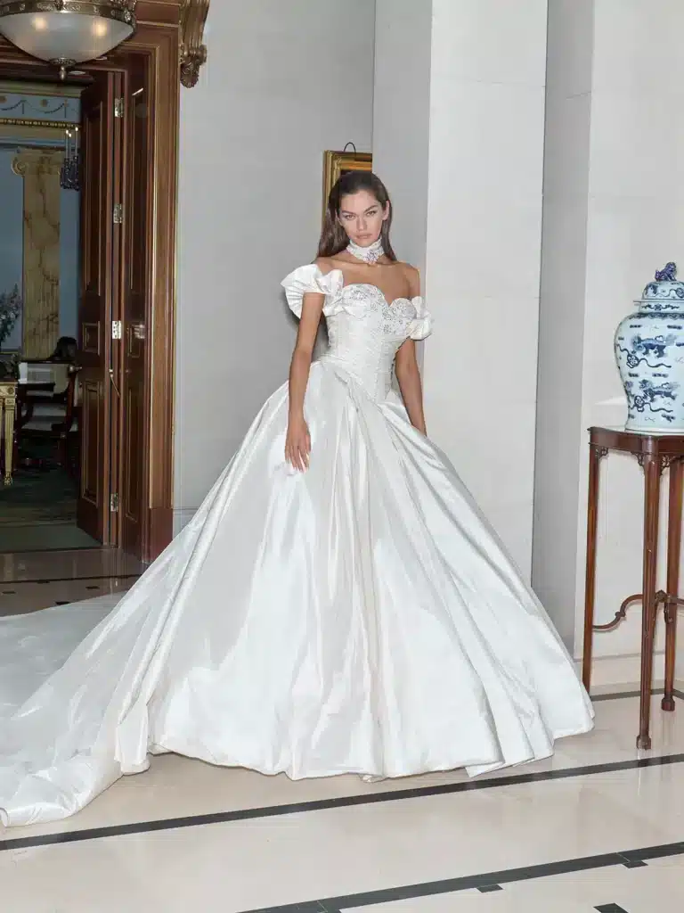 Kolekce svatebních šatů pro podzim 2026, představené na uplynulém New York Bridal Fashion Week, mají jasno. Jejich podobu diktovaly důležité uplynulé svatby, například ta zpěvačky Seleny Gomez. Sama totiž oblékla jednoduché svatební šaty s halter neckline z dílny Ralph Lauren. Právě tento elegantní střih proto můžete očekávat i v nejnovějších řadách svatebních salonů. Nadčasová volba je opět na scéně.