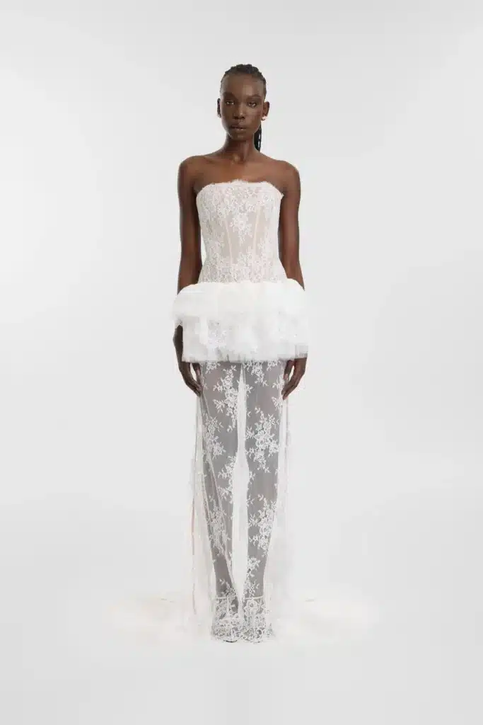Dalším výrazným prvkem nedávného New York Bridal Fashion Week se stala krajka, která ovšem tentokrát oblékla novou podobu. Návrháři s ní pracují v inovativním zpracování a moderním návrhům dodávají nádech tradice. Krajka doplňuje například stylový set sáčka a nadýchané mini sukně nebo téměř průsvitnou strukturovanou róbu. Módní domy tak ukazují, že i klasika umí nečekaně zazářit ve světle inovace.