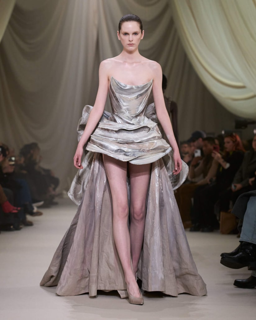 Značka Ashi Studio představila kolekci jaro/léto 2026 s názvem The Beginnings. Pohádkové dílo imituje boj mezi touhou a ztrátou, oddaností a rozkladem. Poetická a vizuálně silná interpretace transformace radikálně spojuje historické prvky se současným designem. Řada čerpala z minulosti a navozuje tak pochmurnou náladu jako vystřiženou z románů 19. století.