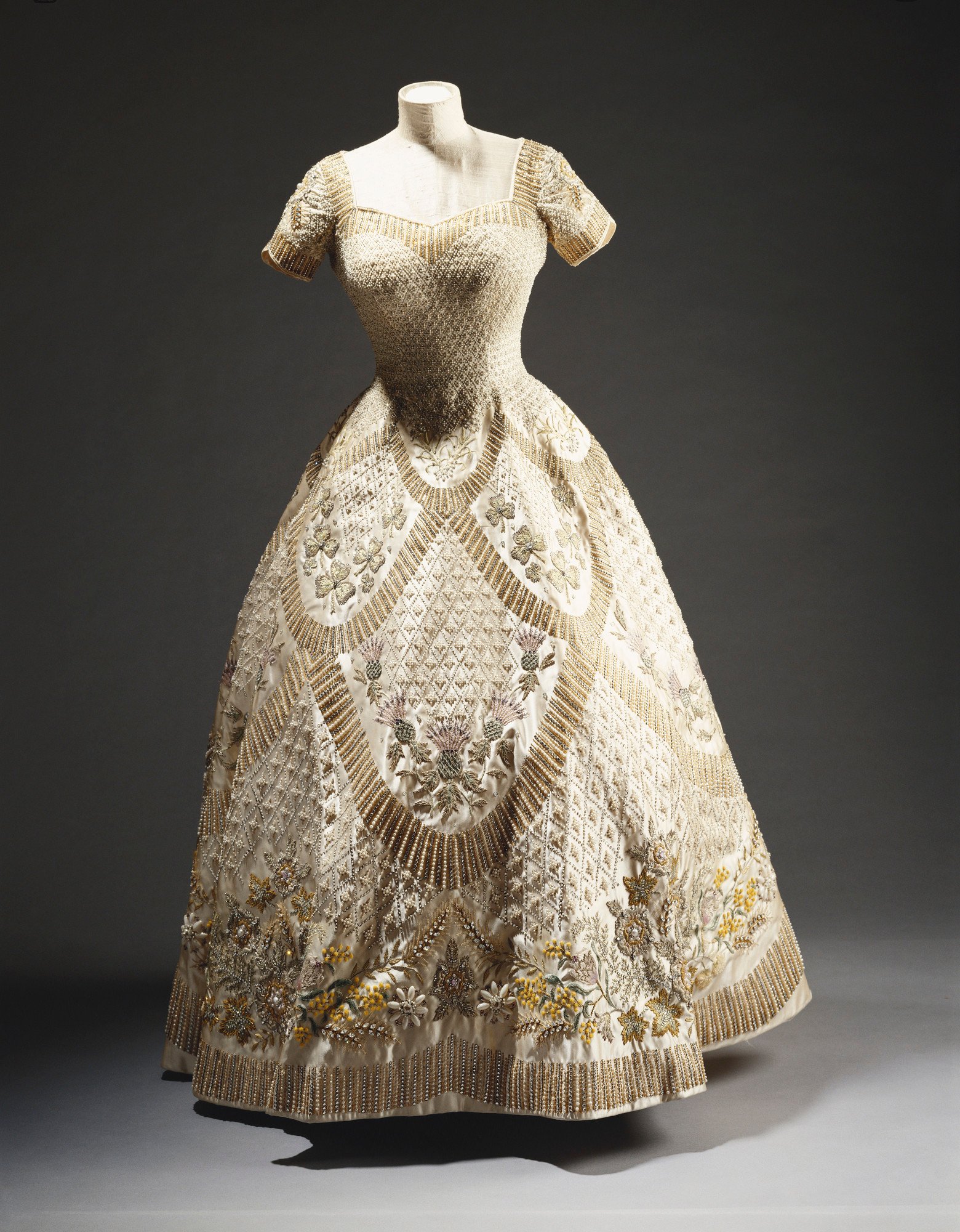 Samozřejmě nemohou chybět ani krásné svatební šaty od Normana Hartnell, který je pro Alžbětu II. navrhnul v roce 1947 a v nichž si vzala svého celoživotního partnera prince Philipa. Hartnellovy korunovační šaty vážící 13 kilogramů se pak na výstavě budou vyjímat společně s několika dalšími róbami z jeho dílny, ale také od návrhářů, jako je například Richard Quinn, Christopher Kane nebo Erdem Moralioglu.