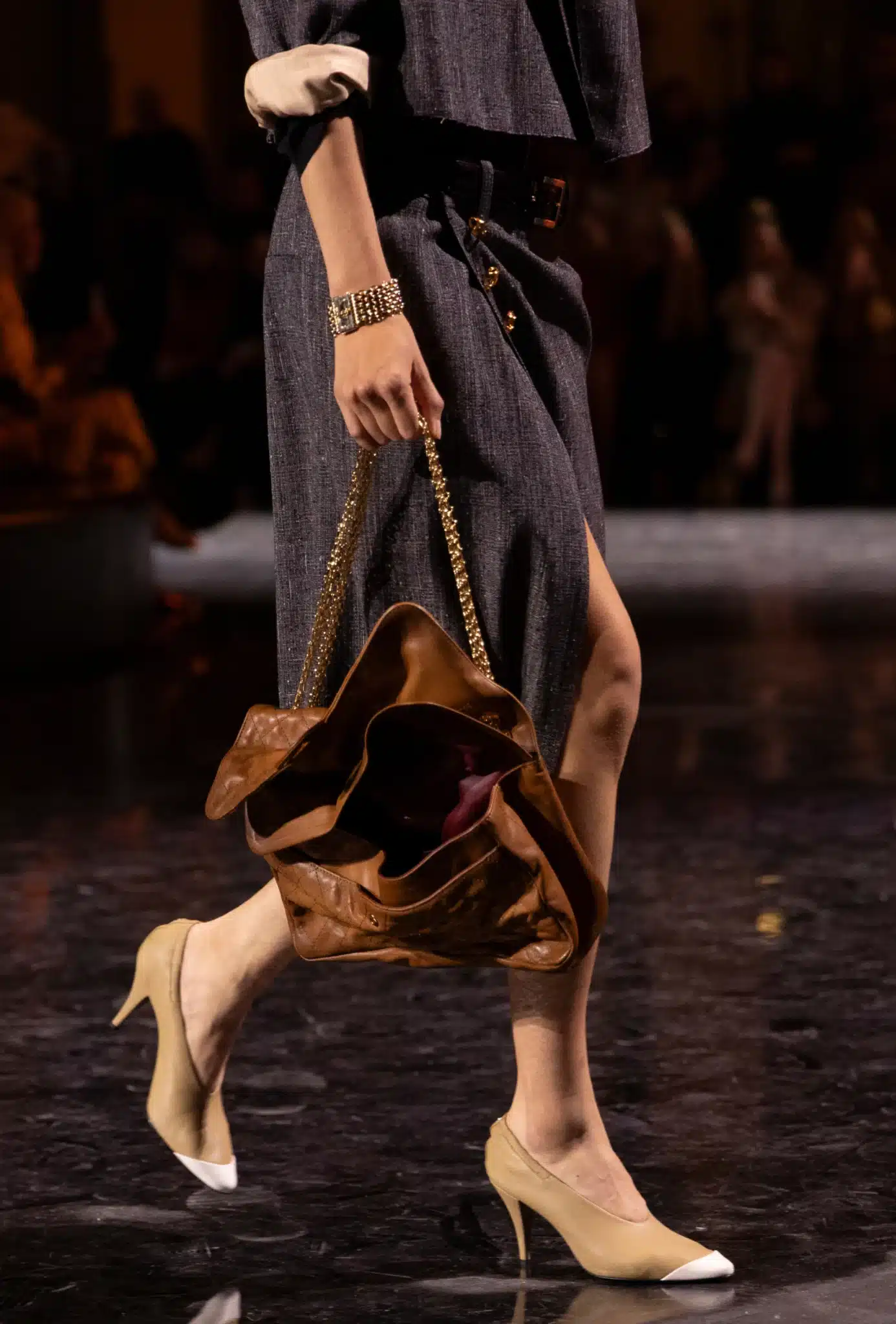 Návrhář Matthieu Blazy ve své první kolekci pro módní dům Chanel zcela propadl tlaku současné globální politické, ekonomické a kulturní situace. Jeho kabelky téměř křičí o pomoc, jejich neklid zachycuje pomačkaný exteriér a bezmocně odhalený interiér. Téměř čekáme, že zbylé ucho co nevidět upadne a rovněž se pomyslné zoufalosti poddá. Trendy kabelky zachycují nejistotu a nedokonalost moderní doby.