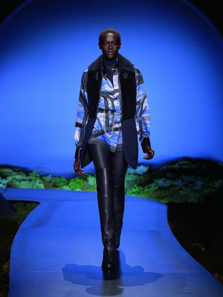 Cílem kolekce bylo vytvořit jemné iluze, které vznikají v momentech, kdy si oči zvykají na tmu, zaostřují a překreslují do té doby zřetelné obrysy. I když jsme řadu spatřili za jasného denního světla, okamžitě jsme mezi přeplněnými stojany ucítili atmosféru modré hodiny, šerosvit, v němž žijí sebevědomé, tajemné, a hlavně svobodné ženy. Po přehlídkovém mole i ulicích kráčejí hbitě, s vědomím vlastní moci.