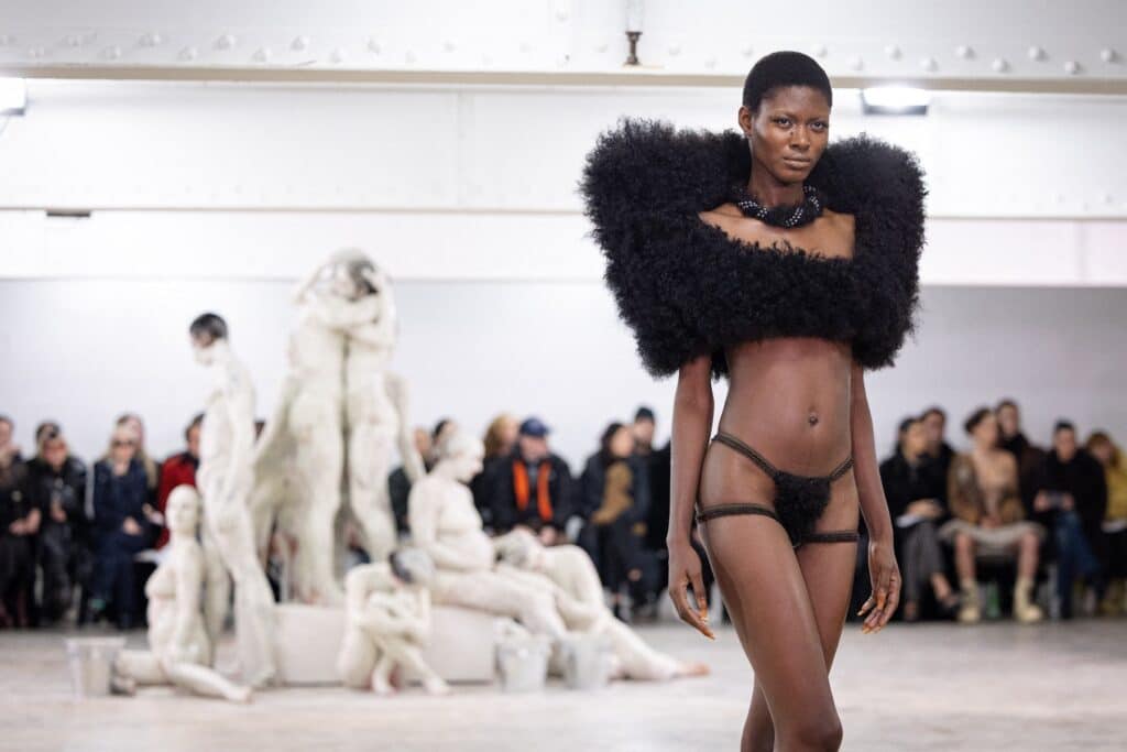 Co kdyby místo klasických látek modelky nosily něco opravdu netradičního? Charlie Le Mindu představil haute couture kolekci, která zkoumá vlasy jako strukturu, povrch i architekturu. Návrhář stojí za myšlenkou, že návrat na módní mola už není o body positivity, ale o viditelnosti těla. Event spojil módu, umění a performance. Modelky předváděly odvážné kousky, a to včetně huňatých bikin a plášťů z lidských vlasů.