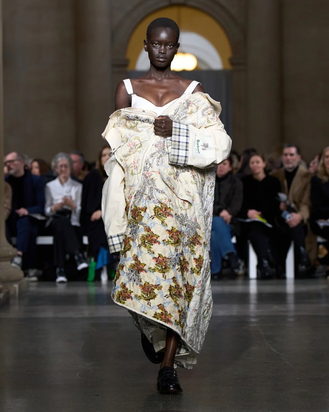 Obě kolekce pro letošní podzim a zimu tak pracují s podobným kontrastem. Zima obvykle znamená navrstvený minimalismus, tmavé kabáty a praktičnost. Simone Rocha i Erdem ovšem tentokrát přinášejí opačnou atmosféru. Těžké materiály, kožešiny a večerní siluety doprovází botanické motivy. Květiny tak v konečném důsledku vytvářejí pomyslný ochranný prvek, něco, co člověk nosí blízko sebe.